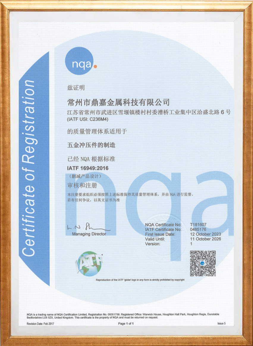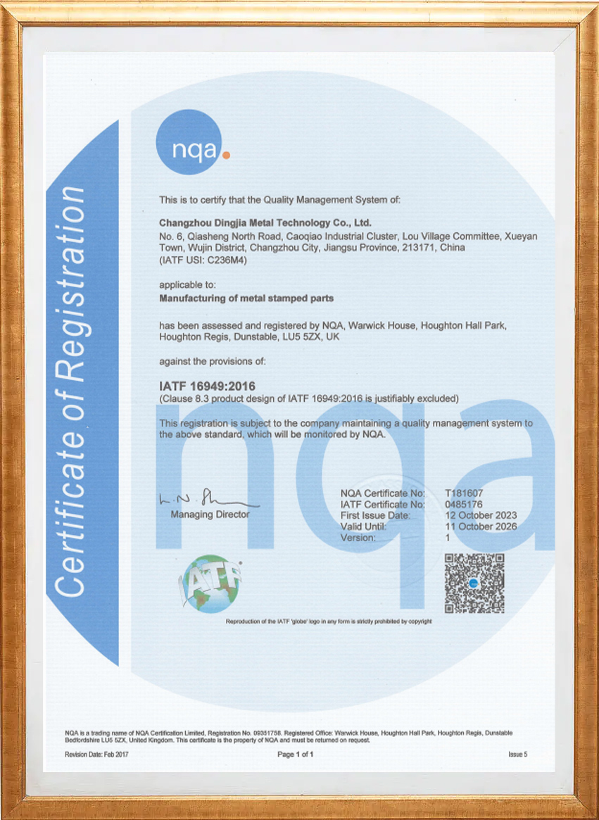 চাংঝু ডিংজিয়া মেটাল টেকনোলজি কোং, লিমিটেড অনেক খ্যাতিমান উদ্যোগের সাথে স্থায়ী সম্পর্ক গড়ে তুলেছে, এর বিশ্বাসযোগ্যতা এবং ধারাবাহিক বিতরণকে প্রতিফলিত করে। অখণ্ডতা এবং শ্রেষ্ঠত্বের জন্য এর খ্যাতি স্বয়ংচালিত, ইলেকট্রনিক্স এবং মেডিকেল যন্ত্রপাতি খাতগুলি জুড়ে প্রতিধ্বনিত হয় - এমন ক্ষেত্রগুলি যেখানে নির্ভুলতা স্ট্যাম্পিং অংশ অবশ্যই সর্বোচ্চ মানদণ্ডগুলি মেনে চলতে হবে।